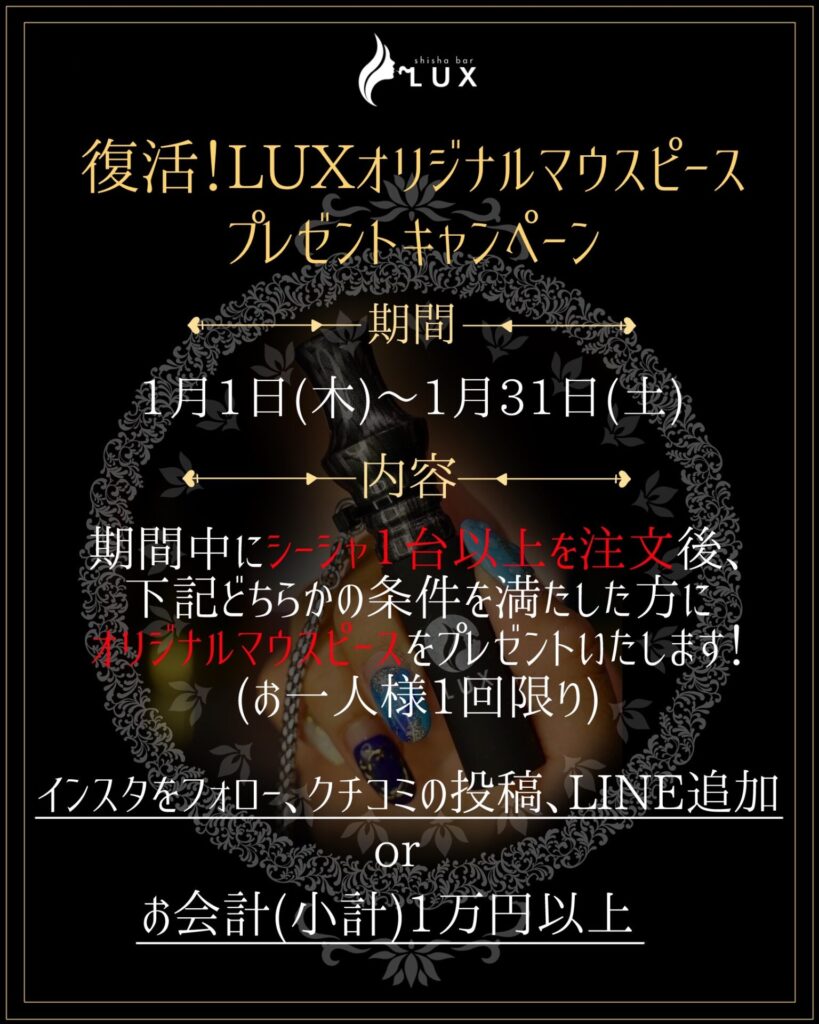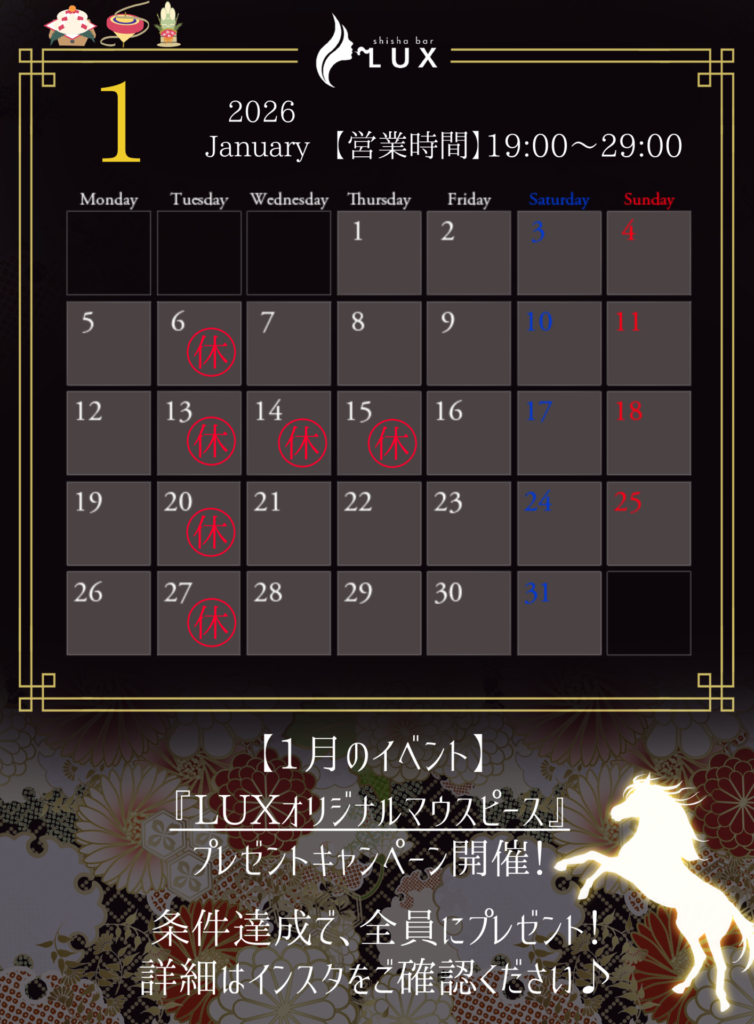 なお、shishabar LUXは年始も1日から営業しておりますので